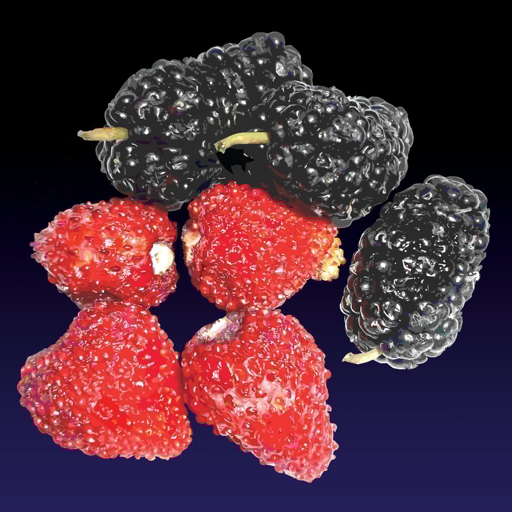 These fruits, appear very similar, and hit the markets at the same time: but they are very different. Strawberries are produced by a plant that originally grew wild in the forest; mulberry trees, with both white and black fruit, are produced by large trees. The latter have had great economic importance in Sicily because they are